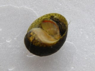 【左】イシマキガイ。水質階級U・少し汚い水の生き物となっています。水槽の藻を掃除してくれます。