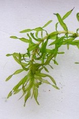 【中】川中にコカナダモ(北アメリカ原産)が茂っていました。在来のクロモが見られなくなりました。