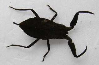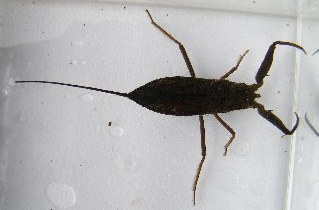 【左】タイコウチ。呼吸管が長く、水中にもぐり水中で生活しています。