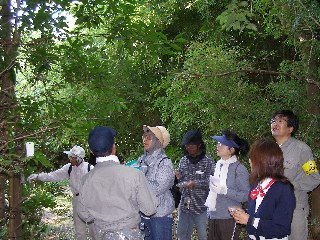 先週の気象情報では曇り後、雨の予報でしたが前線が去り絶好の観察日和となりました。駐車場提供から会議室での工場案内など心暖まる歓迎振りに先ず、観察会メンバー,一同が感激に浸りました。創業以来30年経過した幅100m、長さ2,000mの出光さん誇りのグリーンベルトに入ればヤブ蚊も物とせず森林公園を観察、直ぐに外来種のトウネズミモチが周囲を憚らず活き活きと高く聳えていました。間もなくトウカエデ、セイヨウヒイラギ、モウソウチク等の外来種で森林形成されているのに気付き随行の工場関係者に、知多地方の山で普遍的に見られるカクレミノ、ヒサカキ、モチノキ、サカキ、クロバイ、クヌギ等の植栽奨励、併せてアケビ、スイカズラなどのツル草植えのアドバイスもしました。また、森林の生育評価ともなるヤブツバキも加えると指標の手助けとなることも付言しました。最後に、中日新聞で紹介された100年目に開花すると言われるセンチュリー・プラント(実際は10〜20年で開花のようです)=リュウゼツラン=を見学させて頂き各自、思い想いに白黄色の花を付けた光景を浮かべ、工場を後にしました。(小川/記)