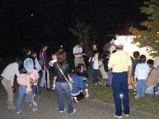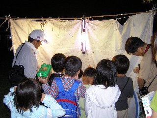 【中】明かりに集まった虫の説明を聞いています。