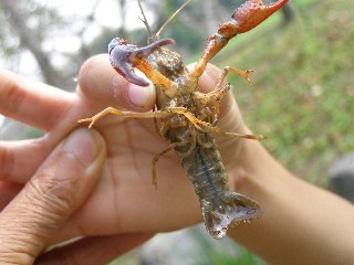 【左】色々な実りを発見できました。公園西側の水路でヒバカリ、イシガメ、カワニナ、アメリカザリガニを発見し子供たちは大喜びでした。