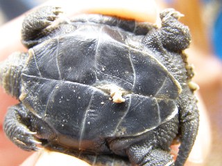 【左】イシガメの赤ちゃんです。お腹はどうしたのでしょう。
