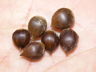 【左】選定したモチノキの樹皮に触り、粘りを確認しています。