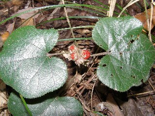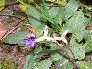【左】畑の土手に咲いたコスミレ  【右】フユイチゴ
