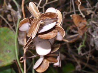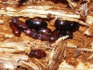 【右】エグリゴミムシダマシとヨツコブゴミムシダマシの集団越冬。