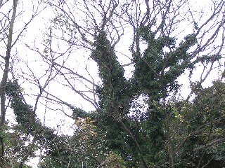 【左】ムクノキに巻きついて上ったフユヅタ。
