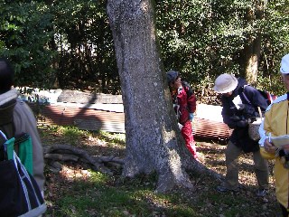 暫く暖かい日が続いていましたが今日はちょっぴり冬の顔を覗かせた日和です。石根グラウンドに集り観察・調査コースを説明後、出発しました。シイ、カシ類、タブノキ、クスノキ、ツバキなど常緑広葉樹が優占種となった照葉樹林帯の二次林のようです。石根グラウンドを北側に巻いて辿る途上、三本の葉脈と葉の付根からの花序とでヤブニッケイとクスノキの葉の見分け術のレクチャーや環境指標植物のウメノキゴケの見事な生き様の説明を受けながら種廻間池の南側を観察しました。先日京都でカンサイタンポポの開花便りを聴きましたが、当地でも日当たりの良い小道に咲いたトウカイタンポポの可憐な花を見つけました。近くに巣があるのでしょう、里山の鳥・オオタカの飛翔を見ました。次第に強まる北西風の吹き荒ぶ中、皆で振り返り、取り合せを終え、次回(3/24佐布里ダム〜多度神社)の再会を期して散会しました(小川/記)。