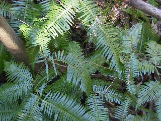 【左】「こんなところにコゴミ(別称:ガンソウ)が生えてる」---種が飛翔して育ったのでしょう。   【右】コシダ