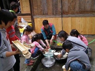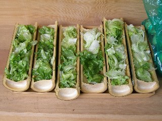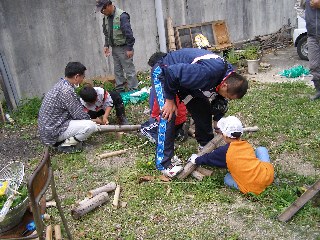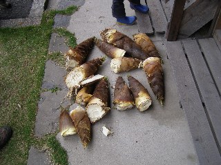 昼食は事前準備の筍ご飯に筍汁、レタス、茹でブロッコリー等を添えて皆で美味しく食べた後、食器洗いも皆できれいにしました。参加者の感想は「自分達で採ったものを食べるのはまた格別」、「筍掘りは見付けてから大変だった」、「サツマイモ植えにもまた来たい」などでした。今回の参加者の皆さんが一年を通じて”大自然と接して、その恵みを考える”リピーターとなって欲しいですね。一般参加者の解散後、会員間で次月のサツマイモの本番苗植えの前週位に再度畑整備すること(日程別途連絡)や本番では一般参加者の皆さんにはスコップ持参をお願いする事などを確認しました(小川/記)。