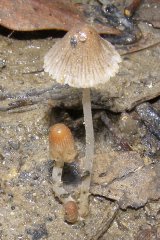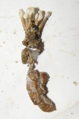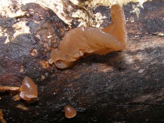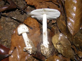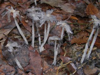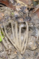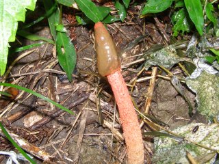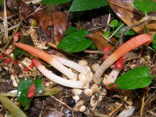 【左】キヒダタケ(毒)以前は食用とされていた 【右】キツネノタイマツ先の胞子の部分は肉の腐った匂いがします。