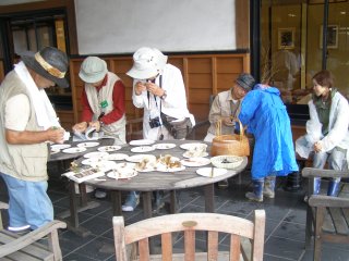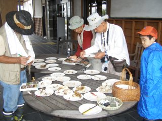 【左】冬虫夏草のツクツクボウシタケ 【右】梅の館の屋外ロビーで名前調べをしました