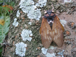 【右】アブラゼミの死骸です(季節外れの羽化で死亡したのでしょうか?腹部が無くなっています。原因不明です)