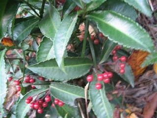 フユサンゴ、センリョウ、マンリョウ、ヌカゴ、コクラン、ノハカタカラクサ、ヤブツバキなど