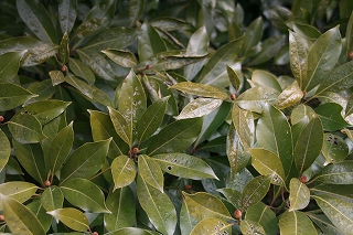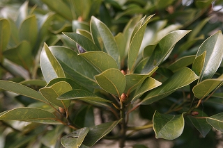 【右】つやつやのタブの木 芽も大きく膨らんでいます