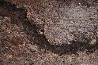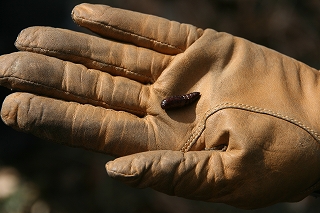 【左】土の中に隠れていた蛾のさなぎ 多分ヨトウガの仲間
