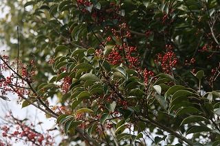 【左】まっかな実をびっしりつけたクロガネモチ