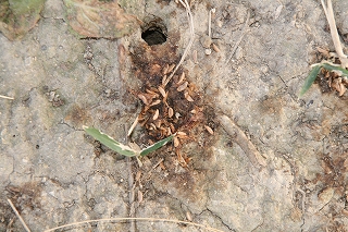 【右】だぶっています。ベンチ下のモグラさんのトンネル カブトムシの幼虫を食べたのかも です→きのこのがぞうとでもさしかえてください。その場合のコメントは 「立派なキノコ  コフキサルノコシカケ?」となります。