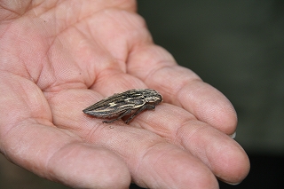 【左】死んでいたと思ったら動き出したウバタマムシ 松の木が好きです。