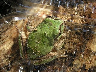 【右】目を覚ましたアマガエルさん(ごめんなさいね)
