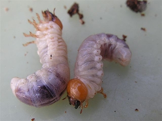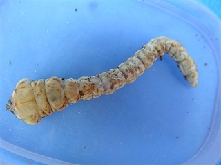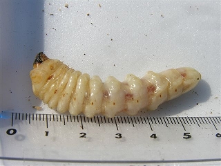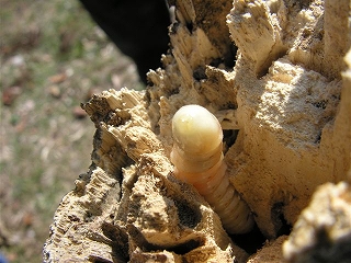 【右】体長5cm余のウスバカミキリの幼虫です。