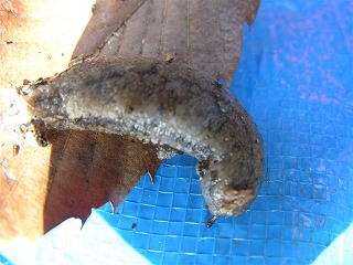 【左】ナメクジが木の葉の下で眠っていました。 【右】カミキリの幼虫が朽木でお尻を出していました。
