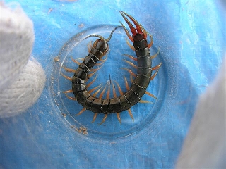 【左】アオズムカデという大ムカデの仲間で、毒性が強いから注意しましょう。