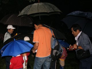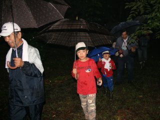 ホタル観察は、現地まで自家用車で移動しました。目的地に到着したら車の中から飛翔しているヘイケボタルを早速、確認しました。車の外に出たところたくさん光っているホタルを確認することが出来ました。雨の中での少人数のホタル鑑賞は最高でした。(記・降幡)