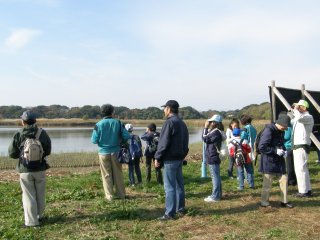 知多市地域文化センターが計画して、知多市のバス利用し、近隣の自然体験施設を訪れ自然体験をするシリーズが組まれています。今回は野鳥を中心に観察体験が計画されました。