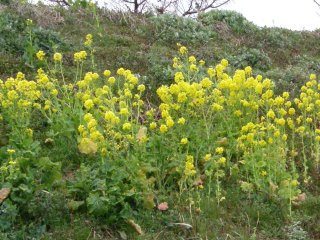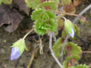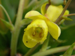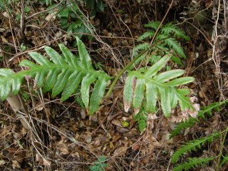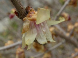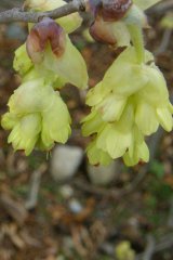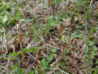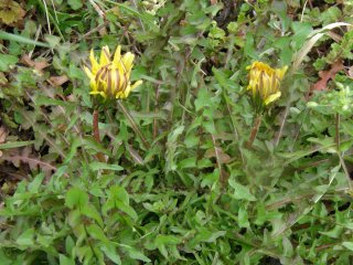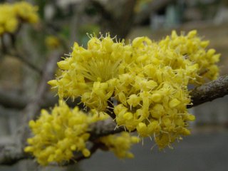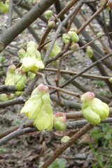 大変寒く、あいにくのお天気で、参加予定者全員が、当日になってキャンセル。残念ながら、会員のみの観察会となる。梅の館からパークロードまでに、咲いている花は何色が多いか、木々や草花の芽の様子等を観察しながら行くと、シダレ梅、サンシユ、トサミズキ等が美しく咲いていて、春爛漫という感じである。圧倒的に黄色の花が多く咲いていた。パークロードにある水琴窟では、全員が水を流しては、自分の音色に聞き入った。水琴窟の近くに咲いている、ヒイラギナンテンの花に刺激を与えると、アザミと同様に花が開きだした。あぜ道や土手には、野草が多くしげり、ツクシやスギナも背比べをしていた。知多市では、見つからなくなったコモチシダを、民家の庭先で見付け、あまりにも立派に成長している姿に、寒さはいずこへか飛んでいった。(記・吉房)