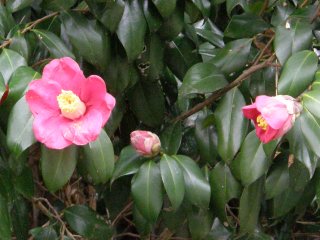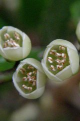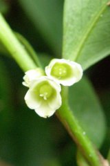 【中】ヒサカキ、左が雄花、右が雌花、雌雄異株。
