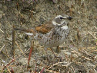 【左】梅の館前曇天で◇風が強い日でした。 【右】ツグミをよく見かけました