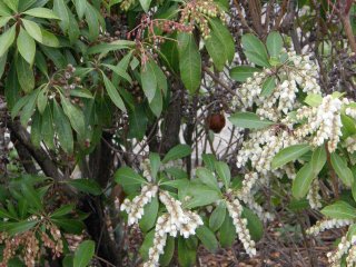 梅、シダレウメ、サンシユ、ボケ、トサミズキ、ヒュウガミズキ、ヒイラギナンテン、ツバキ、ロウバイ、ヒサカキ(雌株・雄株)、ノボロギク、カラスノエンドウ、ナズナ、オオイヌノフグリ、オランダミミナグサ、スズメノカタビラ、ホトケノザ、コハコベ、ミドリハコベ、ヤエムグラ、オニノノゲシ、キケマン、スギナ、ツクシ、トウカイタンポポ、キツネノボタン、イノモトソウ、ベニシダ、コモチシダ