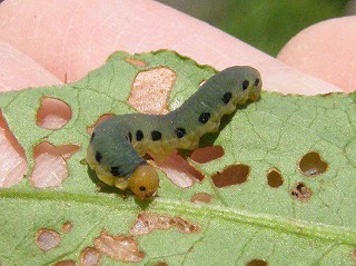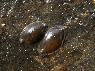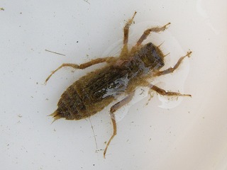 【左】コオイムシの雄と雌、卵を背負っているのが雄です。