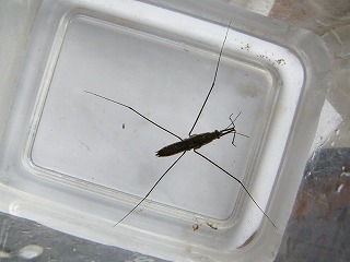 コオイムシの雄と雌、アジアイトトンボ、シオカラトンボ、ヤンマの仲間、アメンボウ、アメリカミズアブ?