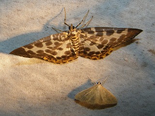 【左】灯火に虫がたくさん集まっていました。今年はコガネムシの仲間が来ませんでした。