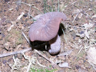 【右】カレバキツネタケ。放尿した跡に発生します。(食)