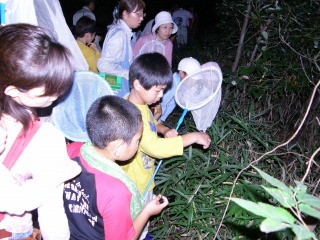 【行事名】 灯火に集まる虫の観察とナイトハイクで生き物探し