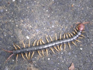 【右】トビズムカデ(オオムカデの仲間で毒が強いので注意、しかし人間にとっては益虫)