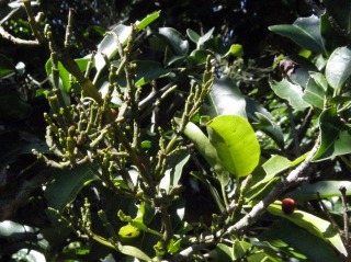 【右】ソヨゴに付いたヒノキバヤドリギ