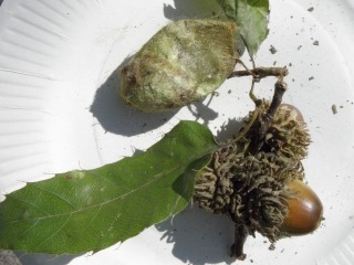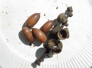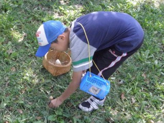 【左】キノコが少なかったのでドングリを拾いました。  【右】芝生のところでキノコを見つけました。