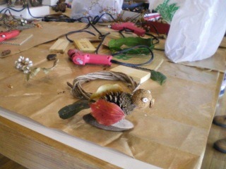 梅の館にもどって拾い集めた木の実や落ち葉と会員の用意した材料や梅の館の備品などを使って工作しました。何事にも熱心な親子達にあおられたか会員も負けず工作に励んでいました。(記 大野)