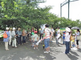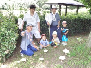 梅雨明けの土曜日 タモと虫かごを持参の親子 おじいちゃんとお孫さんそれぞれやる気満々です。2班に別れそれぞれ西と東に向かって観察開始 公園内は以外に静かで 蝉の鳴き声も全く聞こえず静かです。雨上がりのせいか キノコをいろいろ観察できました。カブトムシ クワガタ カナブンを見つけ 得意な子 つまめない子 トンボを上手に捕まえる女の子 それぞれ夢中になって虫を追いかけ楽しく観察することができました。 (記・高橋)