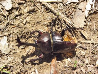 【左】カブトが鳥に食べられたみたいで動いていました。