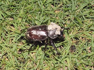【左】カブトムシの雄(体の色ツヤから雄だと思います)
