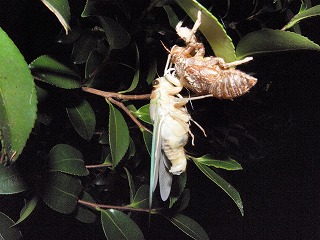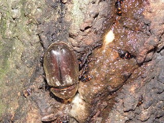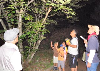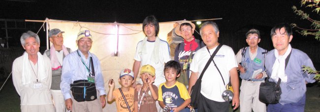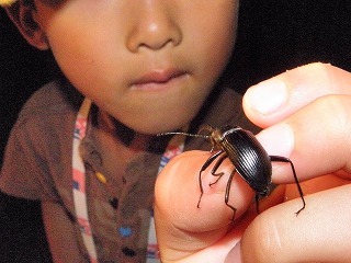 毎日35度を超える猛暑が続きましたが、観察会の前日に久しぶりに雨が降り、気温が少しだけ下がりました。参加者は2家族と少な目でしたが、元気のいい子供たちで、セミを捕ったり、カブトムシを捕っては大きな声でお父さん、お母さんに報告していました。今回の観察会で驚いたことは、名前が書かれたカブトムシが捕れたことです。カブトムシの地域性は、よく知りませんので、余計なことかと思いますが、