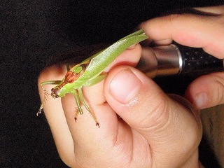 【右】ウマオイムシ♂(ハヤシとハタケの2種類ありますが鳴声でしか区別できないそうです)