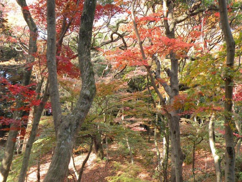 ナンキンハゼ、トウネズミモチ、ホシダ、オニヤブソテツ、イノモノコンギク、フユサンゴ、ノハカタカラクサ、モッコク、モトノキ、モミジの仲間、テイカカズラ、マンリョウ、センリョウ、ミミズバイ、ハリガネワラビ、ベニシダ、シャシャンボ、サカキ、カナメモチ、スダジイ、ムクノキ、クロガネモチ、コシダ、イヌホウズキ、ツルグミ、ノブドウ、ツワブキ