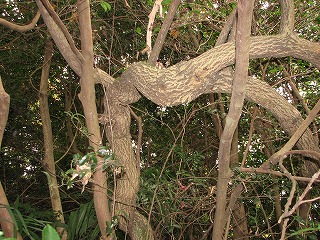 【左】“ゴンの小径”観察スナップ   【右】ゴンの小径のイソノキ(クロウメモドキ科)