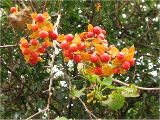 <木の実> コナラ,ツルウメモドキ,カクレミノ,ネズミモチ,ムクノキ,サネカズラ